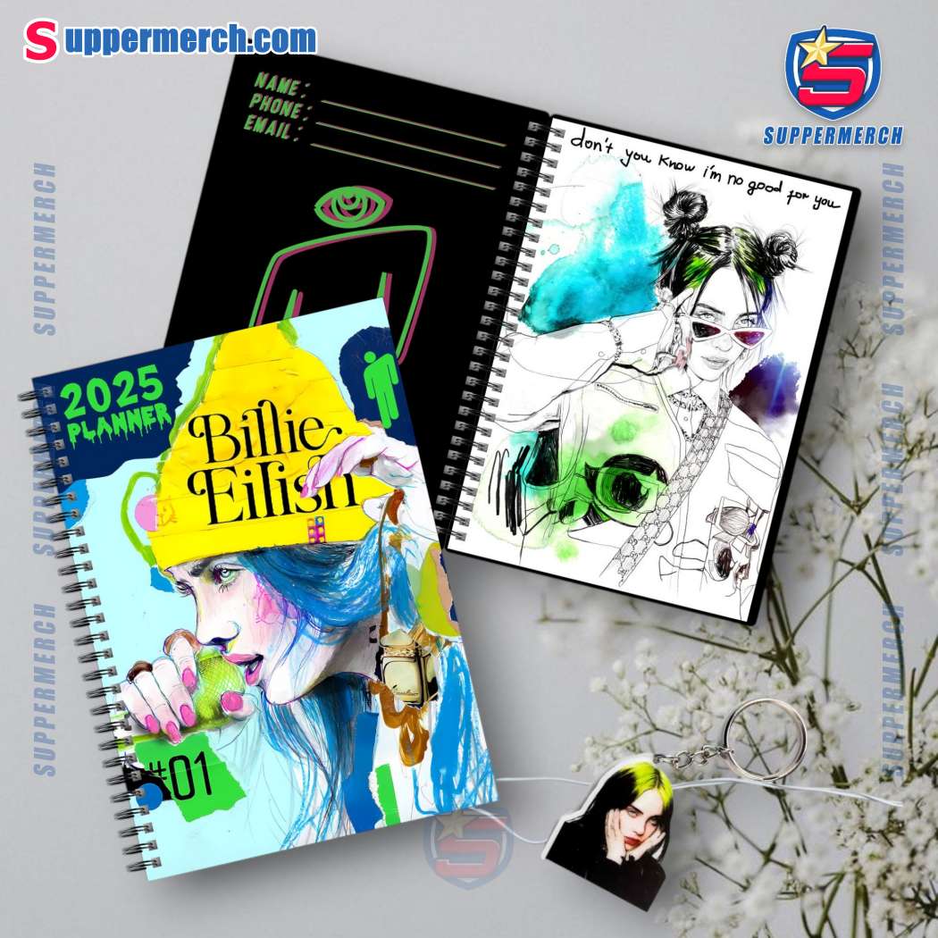 Keywords: Billie Eilish, Don’t You Know I’m No Good For You, 2025 Planner, Daily Planner, A5 Planner, Monthly Planner, Weekly Planner, Music Lover, Singer, Pop Music, Customizable Covers, Gift Ideas, Organization, Schedule, Planner, Suppermerch