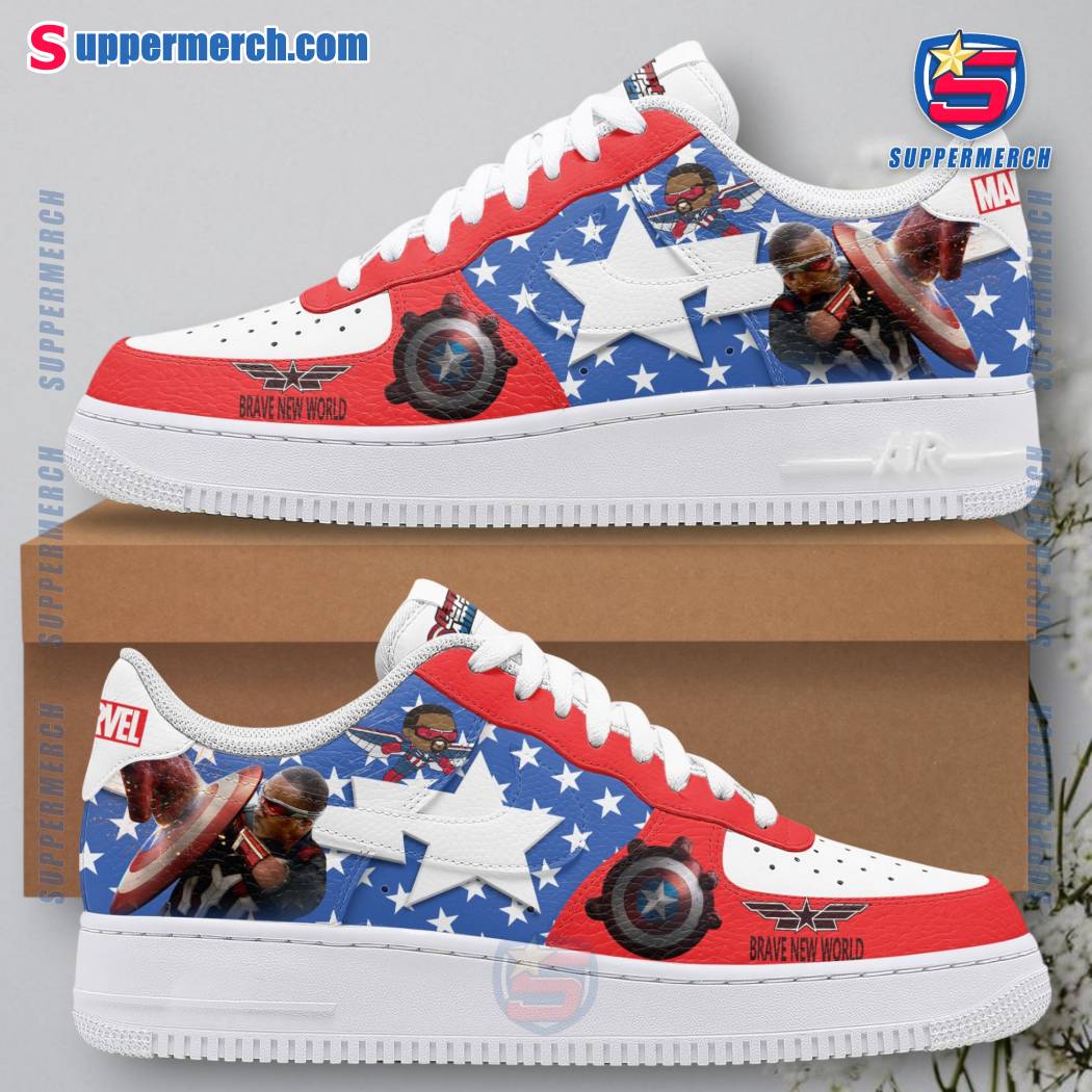 Keywords: Captain America, Brave New World, Air Force Shoes, Sneakers, Athletic Footwear, Sportswear, Unique Design, Trendy, Gift, Suppermerch, Print-on-Demand, Custom Design, Exclusive, Limited Edition, Superhero, Marvel, Comics, Pop Culture