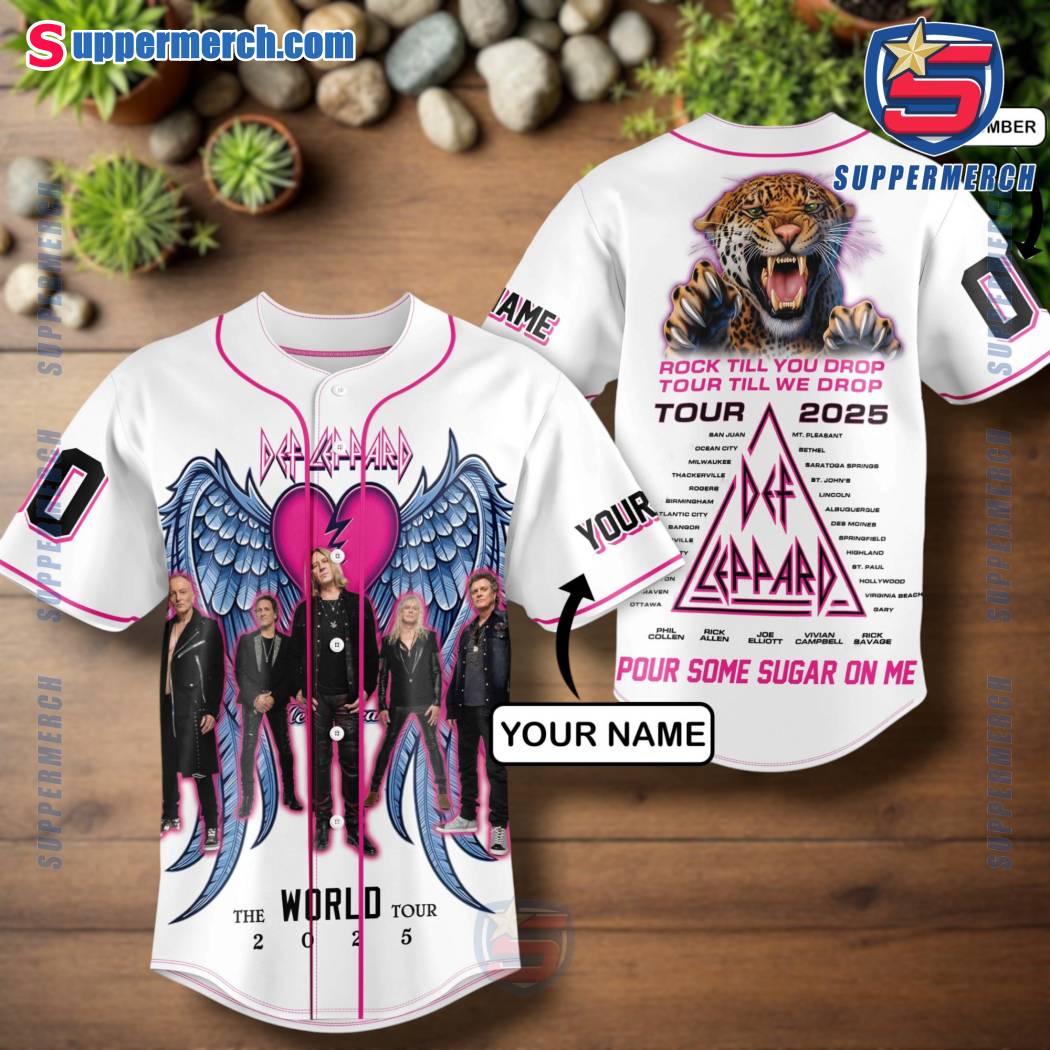 Keywords: Def Leppard, baseball jersey, rock and roll, band merch, personalized jersey, The World Tour 2025, rock music, concert apparel, fan gear, Suppermerch, gifts for music lovers, custom jersey.