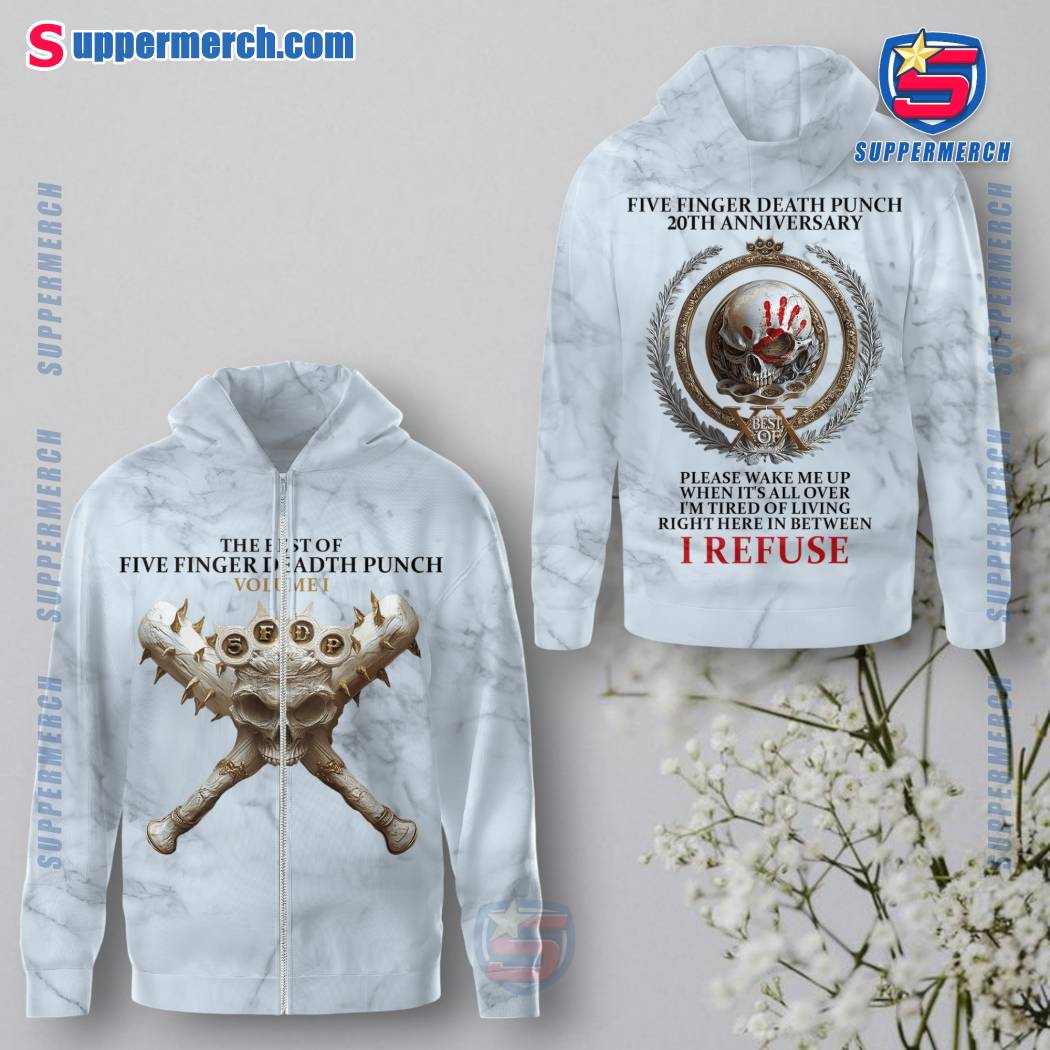 Keywords: Five Finger Death Punch, 20th Anniversary, Best Of Volume 1, T-shirt, Hoodie, Heavy Metal, Rock Music, Music Fan, Metalhead, Band Merchandise, Concert Wear, Unique Design, Suppermerch