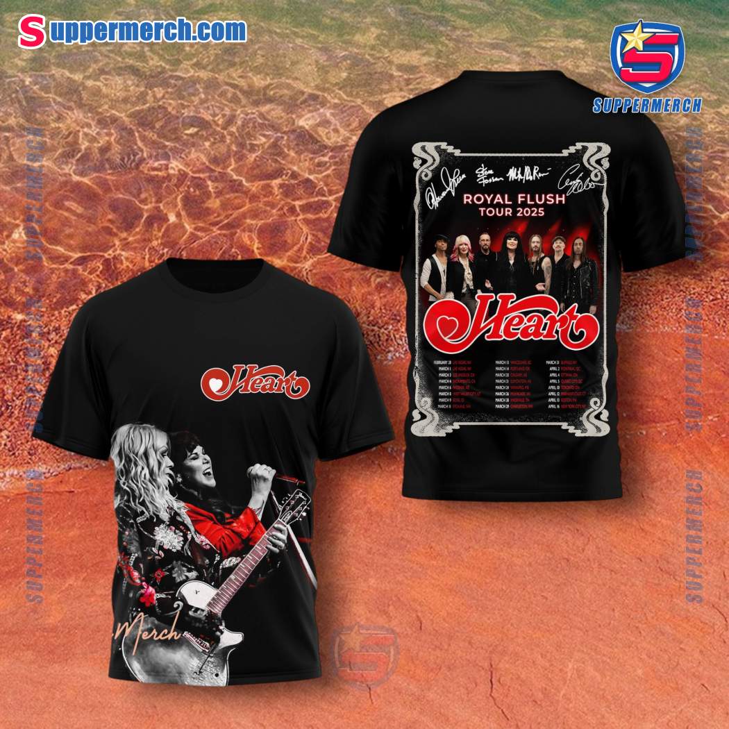 Keywords: Heart Royal Flush Tour, 2025, Music, Concert, All Over Print, T-shirt, Band, Fan Merch, Style, Fashion, Comfortable, Breathable, Fade-Resistant, Suppermerch