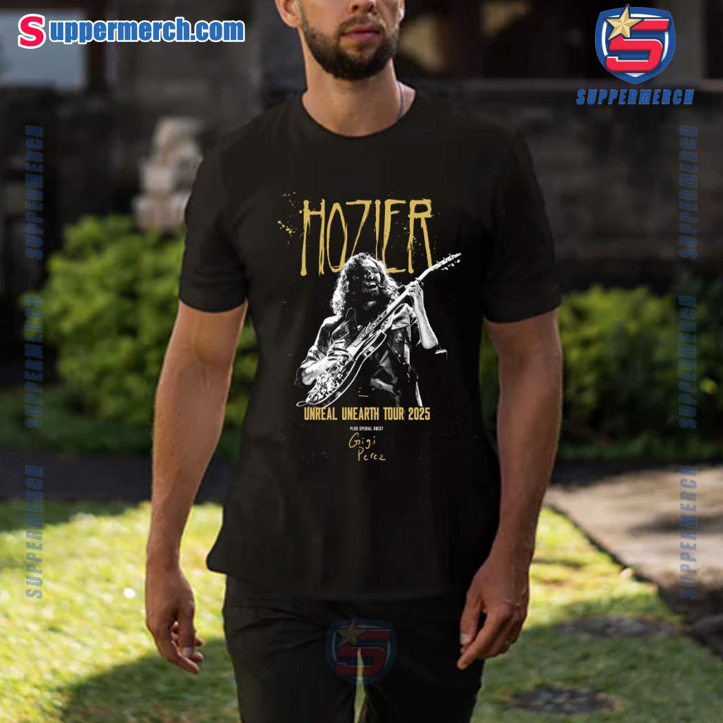 Keywords: Hozier, Unreal Unearth Tour 2025, Gigi Perez, Unisex T-shirt, Music, Concert, Festival, Artist, Singer, Songwriter, Irish Music, Pop Culture, Fashion, Style, Comfort, Durable, Suppermerch