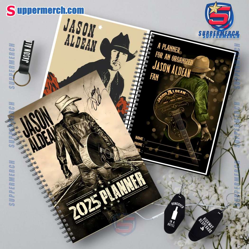 Keywords: Jason Aldean, Country Music, Daily Planner, A5 Planner, 2025 Planner, Monthly Planner, Weekly Planner, Holiday Listings, Contact Pages, Notes Sections, Durable Tabs, High-Quality Paper, Customizable Covers, Gift, Suppermerch, Print-on-Demand, Custom Design, Exclusive, Limited Edition, Music, Fans