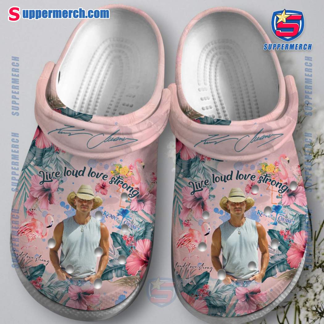 Keywords: Kenny Chesney, Live Loud Love Strong, Crocs, Country Music, Concert, Tailgate Party, Festival, Outdoor Adventure, Comfortable, Lightweight, Waterproof, Croslite, Suppermerch, Unique Design, High-Quality Print