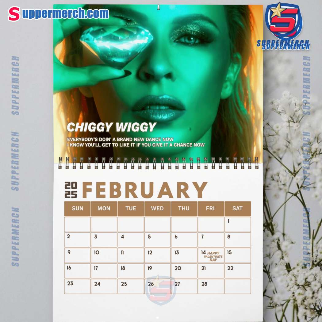 Keywords: Kylie Minogue, Wall Calendar, 2025 Calendar, Pop Music, Australian Music, Pop Icon, Celebrity Calendar, Home Decor, Office Decor, Gift for Fans, Monthly Calendar, US Holidays, Appointment Calendar, Birthday Calendar, Suppermerch, Unique Design, High-Quality Print