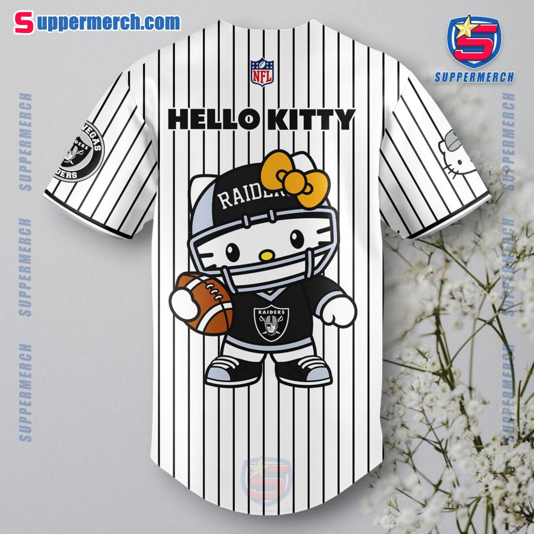 Keywords: Las Vegas Raiders, Hello Kitty, Baseball Jersey, NFL, Football, Sports, Apparel, Fashion, Cute, Adorable, Unique Design, Suppermerch