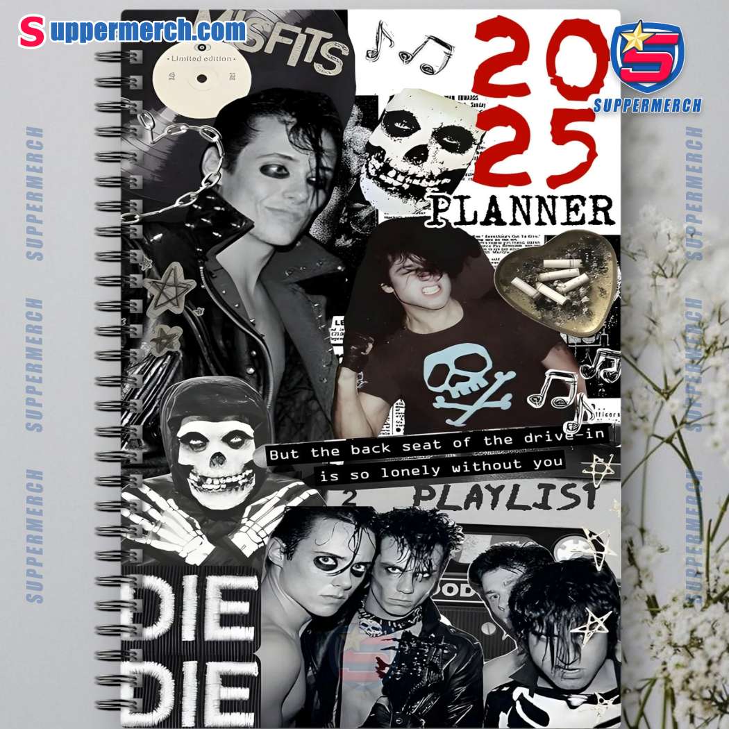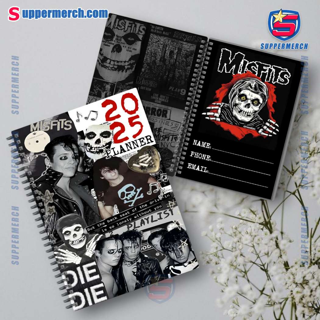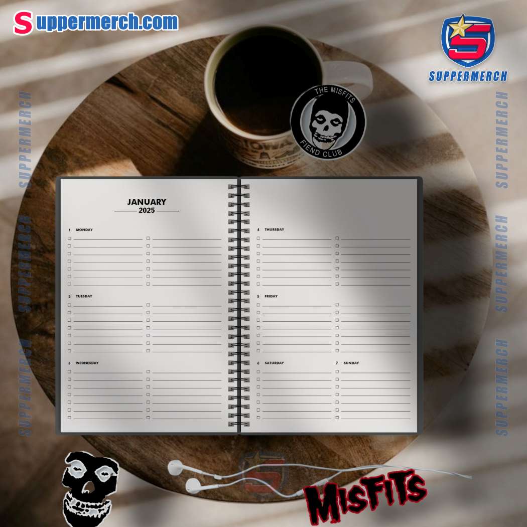 Misfits, 2025 Daily Planner, A5 Planner, monthly planner, weekly planner, holiday listings, contact pages, notes sections, durable tabs, high-quality paper, customizable covers, gift, planner, organization, time management, schedule, Misfits merchandise, Misfits fans, Misfits gifts, Suppermerch, unique designs, personalized gifts