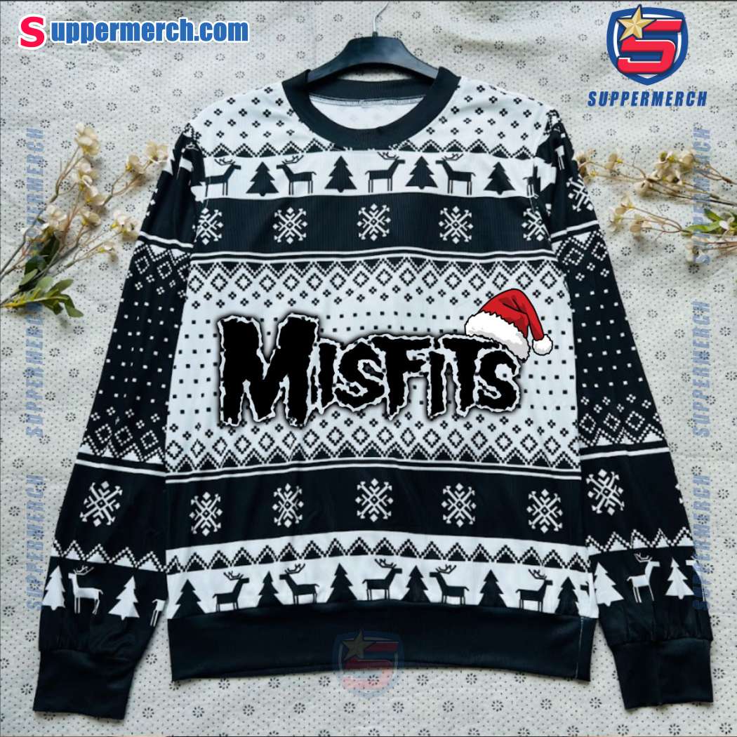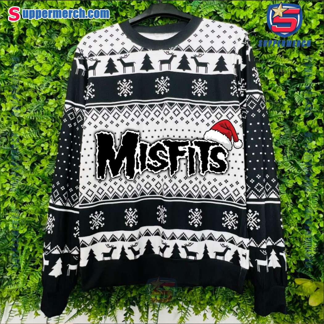 Keywords: Misfits, Christmas, Holiday, Sweater, Punk Rock, Band, Music, Logo, Christmas Hat, Festive, Apparel, Fan Merch, Music Merchandise, Suppermerch, Unique Design, High-Quality Print, Comfortable, Warm