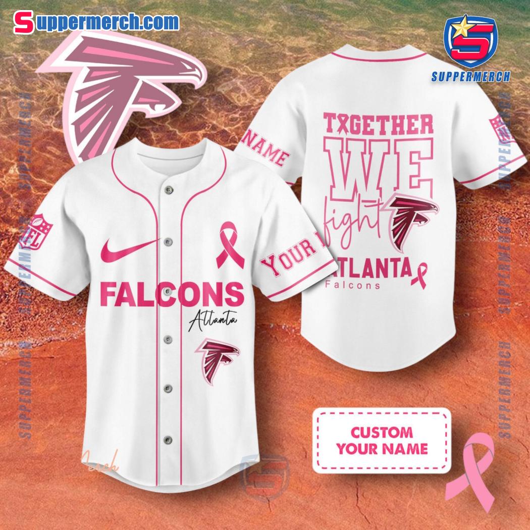 Keywords: Atlanta Falcons, Breast Cancer Awareness, NFL Jersey, Baseball Jersey, Personalized Jersey, Together We Fight, Pink Ribbon, Support Breast Cancer, Falcons Gear, NFL Merchandise, Gift Idea, Custom Jersey