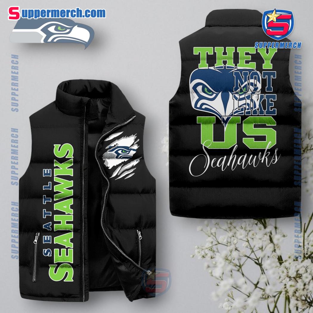 Keywords: Seattle Seahawks, NFL, They Not Like Us, puffer jacket, sleeveless jacket, cotton, breathable, windproof, spring, autumn, winter, football, fan gear, sports apparel, team pride, Seahawks merchandise.
