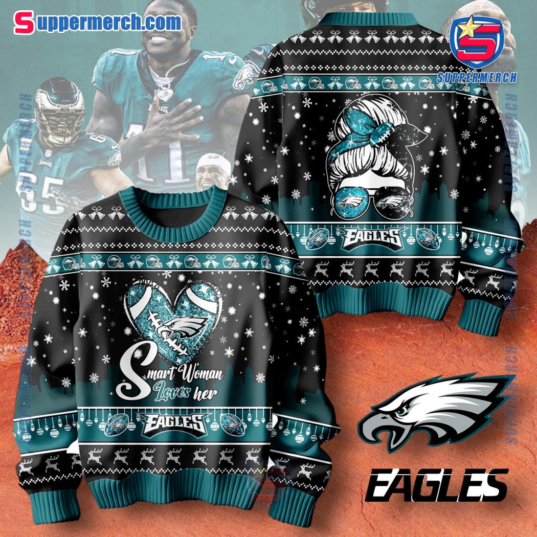 Smart Woman Loves Her Philadelphia Eagles Christmas Holiday Sweater