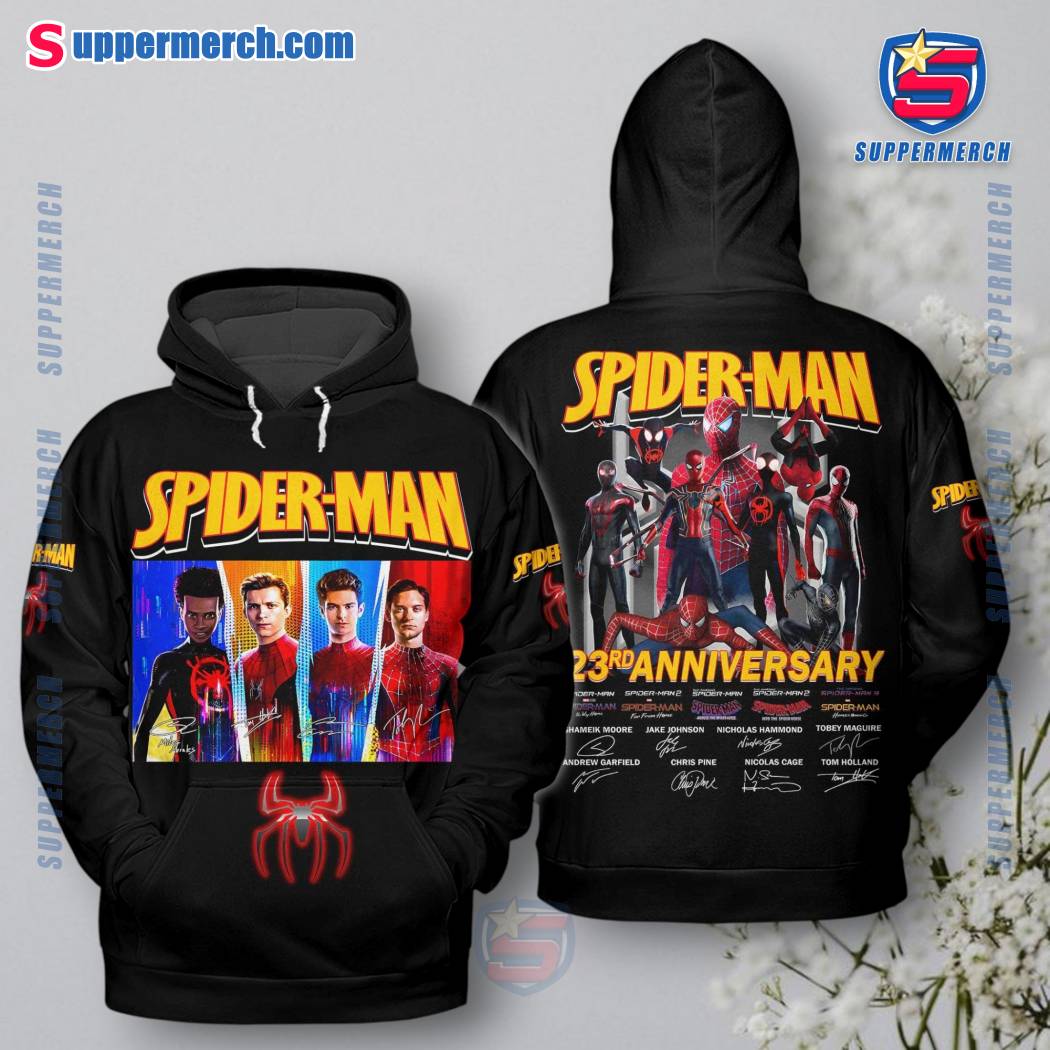 Keywords: Spider-Man, 23rd Anniversary, Signatures, T-shirt, Hoodie, All Over Print, Superhero, Marvel, Comics, Gifts, Fandom, Collectible, Casual Wear, Apparel, Clothing, Design