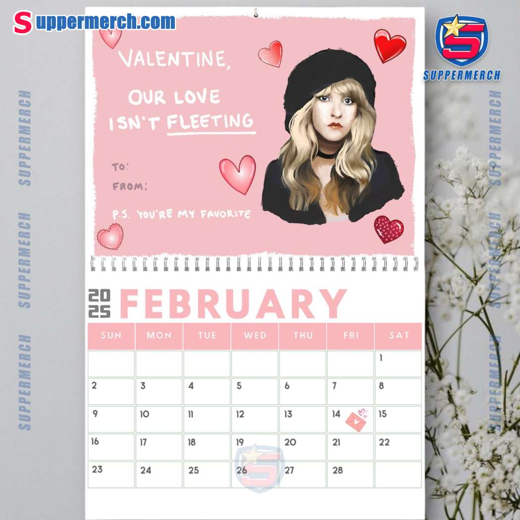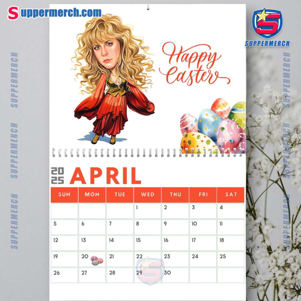 Keywords: Stevie Nicks, Wall Calendar, 2025 Calendar, Monthly Calendar, Calendar with Holidays, Home Decor, Office Decor, Music Lovers, Fleetwood Mac, Singer-Songwriter, Bohemian Chic, Artistic Design, Premium Quality, Gift Ideas, Suppermerch.