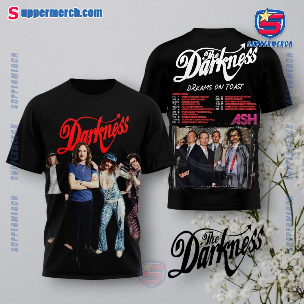 Keywords: The Darkness, Dreams On Toast Tour, 2025, concert shirt, band merchandise, rock music, all-over print, t-shirt, music lover, gift, band logo, tour merchandise