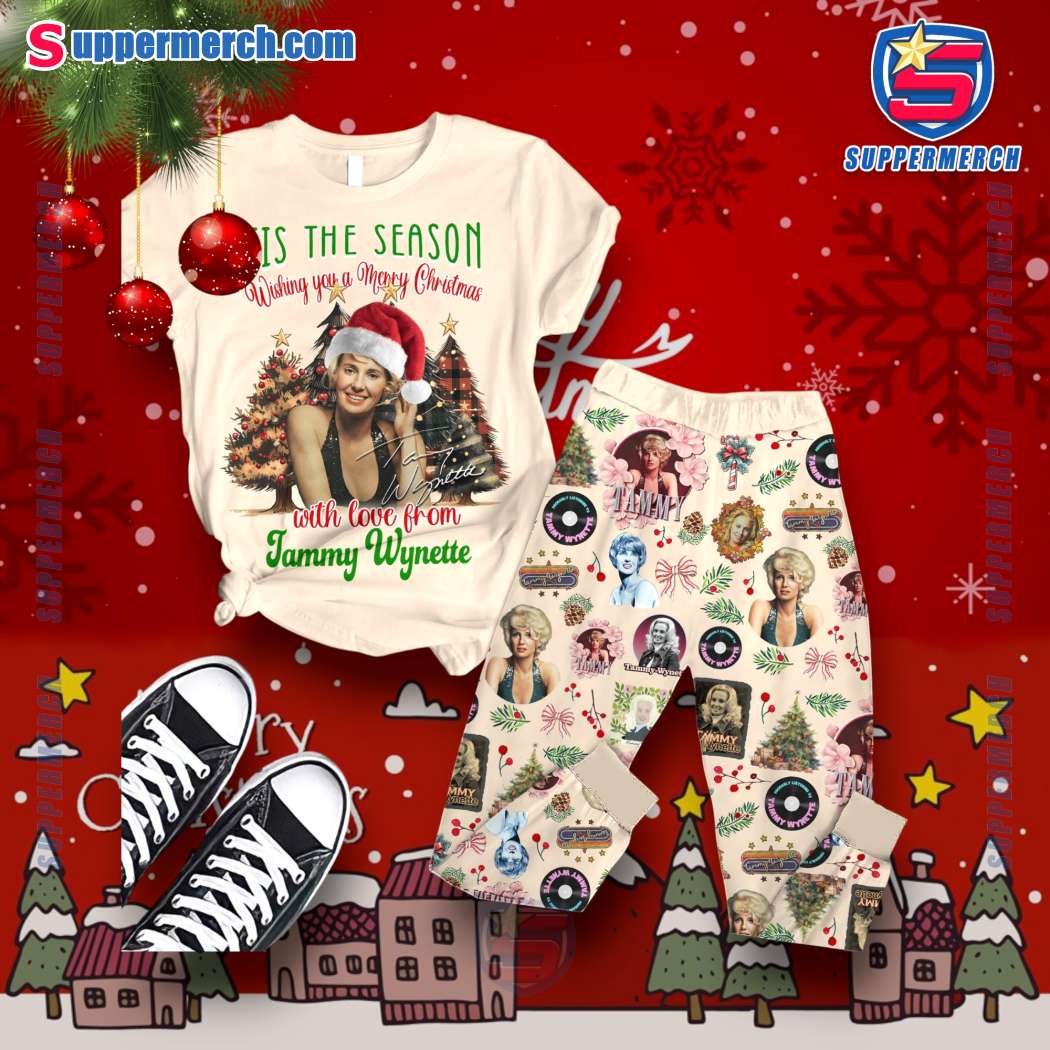 Spread Christmas Cheer with the Tis The Season Wishing You A Merry Christmas With Love From Tammy Wynette Pajamas Set!