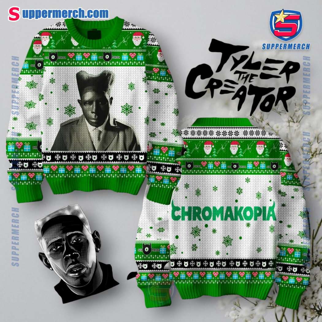 Keywords: Tyler The Creator, Chromakopia, Ugly Christmas Sweater, Holiday Sweater, Christmas Sweater, Music Fan Merch, Music Fan Apparel, Christmas Gifts, Festive Apparel, Tyler The Creator Merch, Hip-Hop Merch, Holiday Gifts
