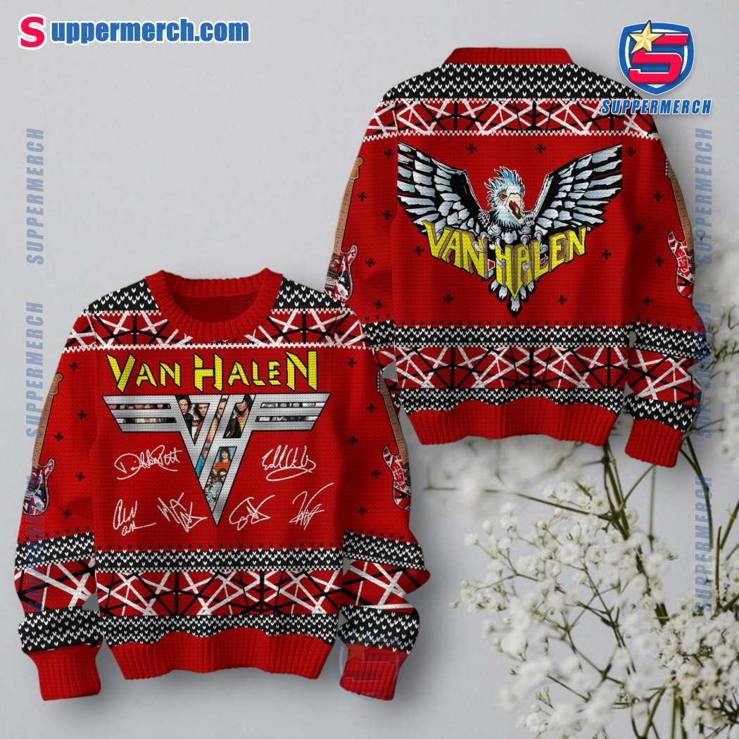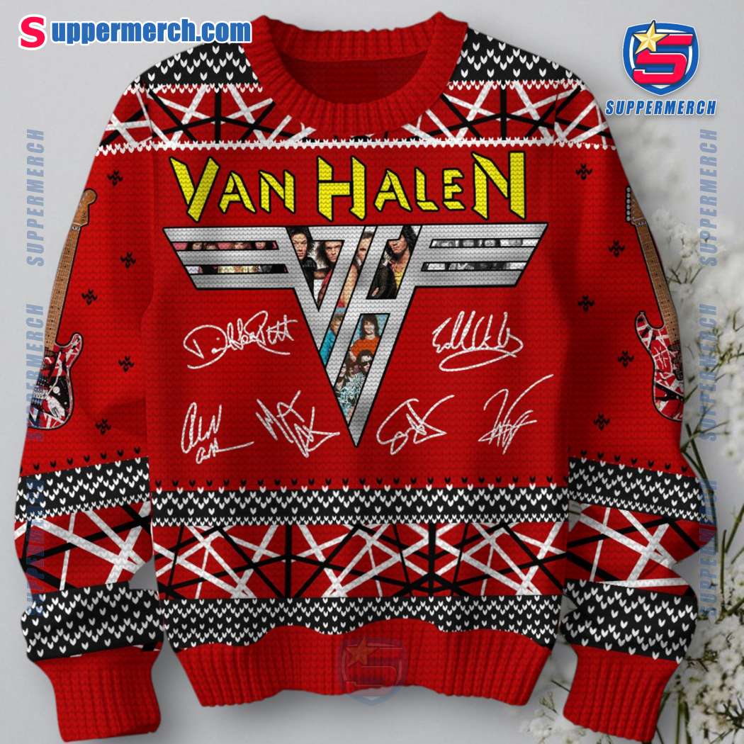 - Van Halen Signatures Design: Show your love for the legendary rock band with this unique sweater featuring the signatures of all four members.