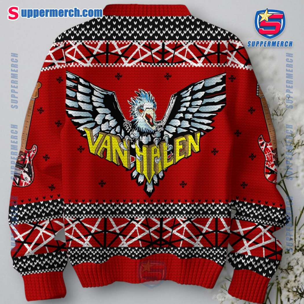 Keywords: Van Halen, Christmas Sweater, Eddie Van Halen, David Lee Roth, Michael Anthony, Alex Van Halen, Rock and Roll, Music, Holiday Sweater, Festive Apparel, Winter Wear, Gift, Suppermerch, Print-on-Demand, Custom Design, Exclusive, Limited Edition.