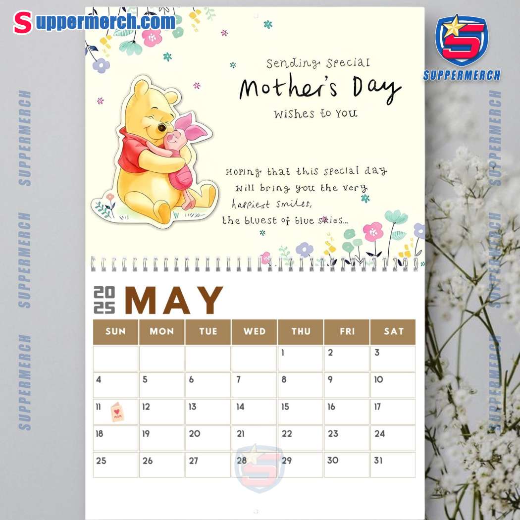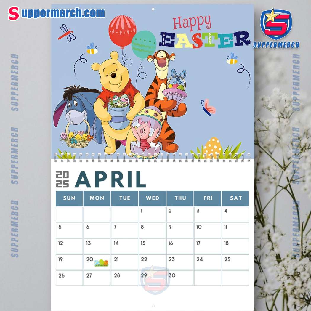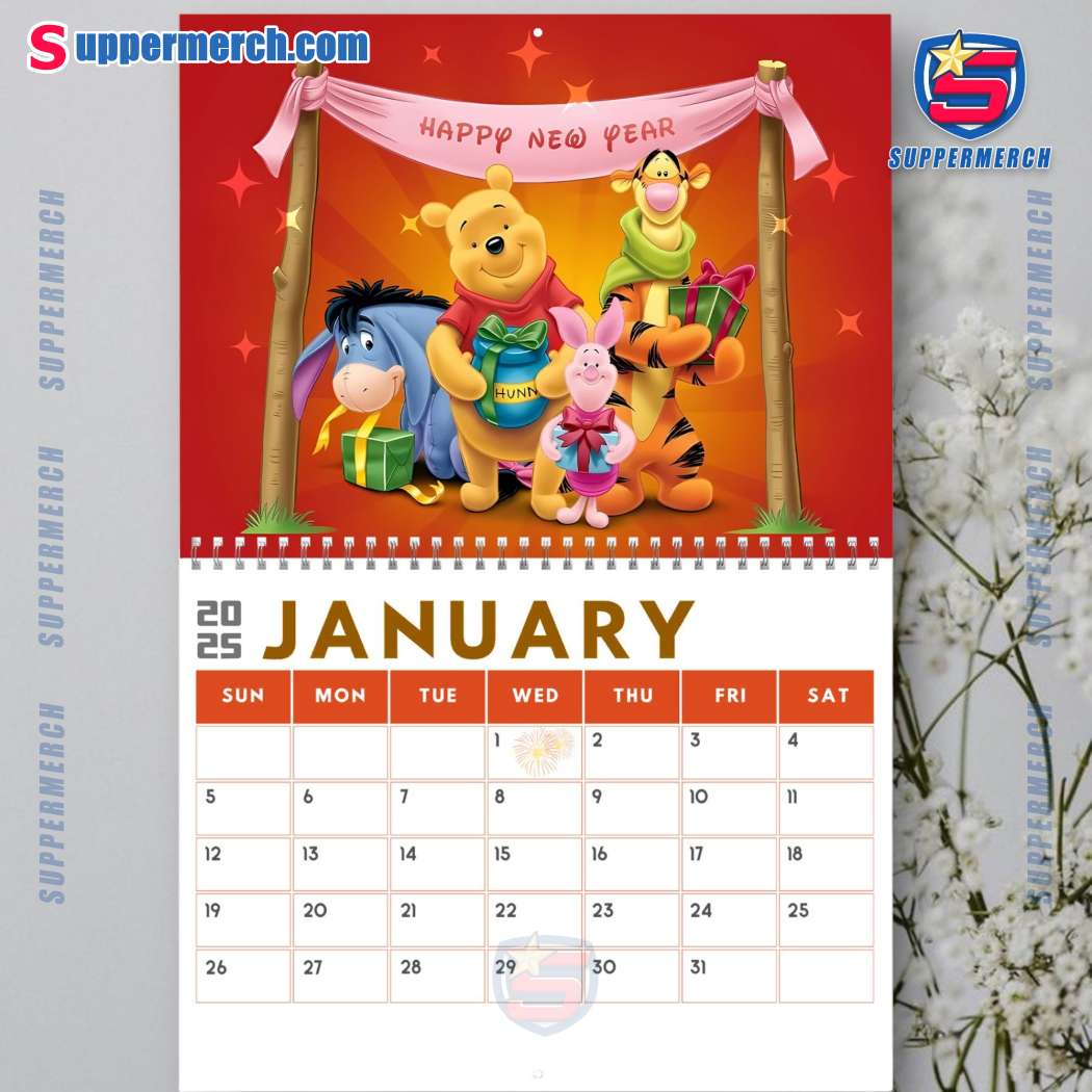 Keywords: Winnie the Pooh, Wall Calendar, 2025 Calendar, Monthly Calendar, Organizer, Planner, US Holidays, Appointments, Deadlines, Birthdays, Home Decor, Office Decor, Classroom Decor, Extra Thick Paper, Ink Bleed-Through, Gift Idea, Suppermerch, Print-on-Demand, Custom Design, Exclusive, Limited Edition, Disney
